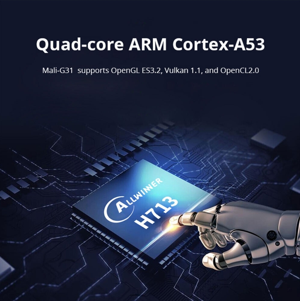 المعالج: Cortex-A53 رباعي النواةGPU: Mali-G31 يدعم OpenGL ES3.2 وVulkan 1.1